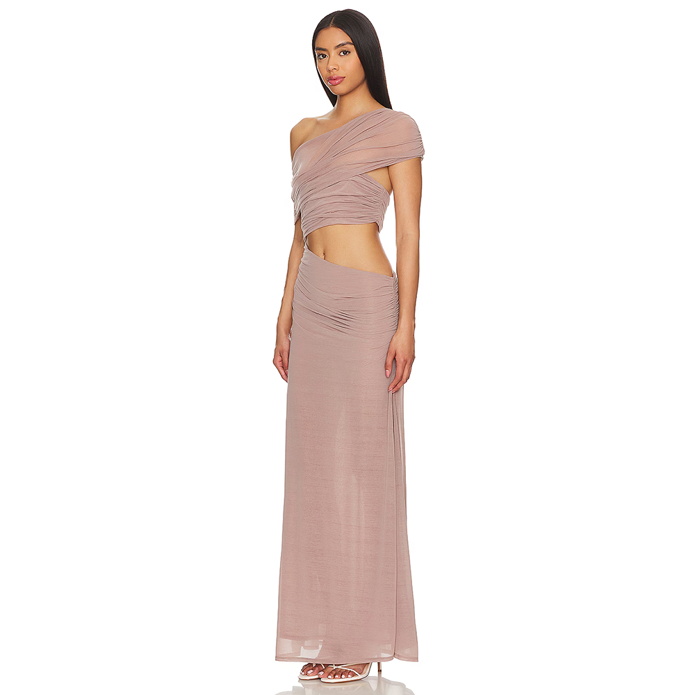Este deslumbrante vestido comprido combina a ousadia do design moderno com a sensualidade de um corte que realça a silhueta. Perfeito para eventos noturnos, festas ou graças especiais onde se quer destacar com elegância e sofisticação.