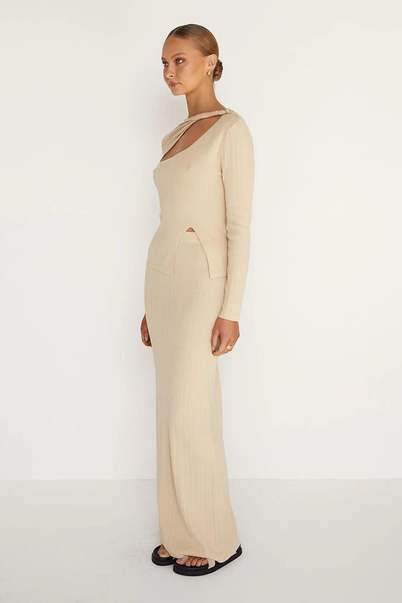 Elegância em Movimento: Saia Longa de Malha Canelada