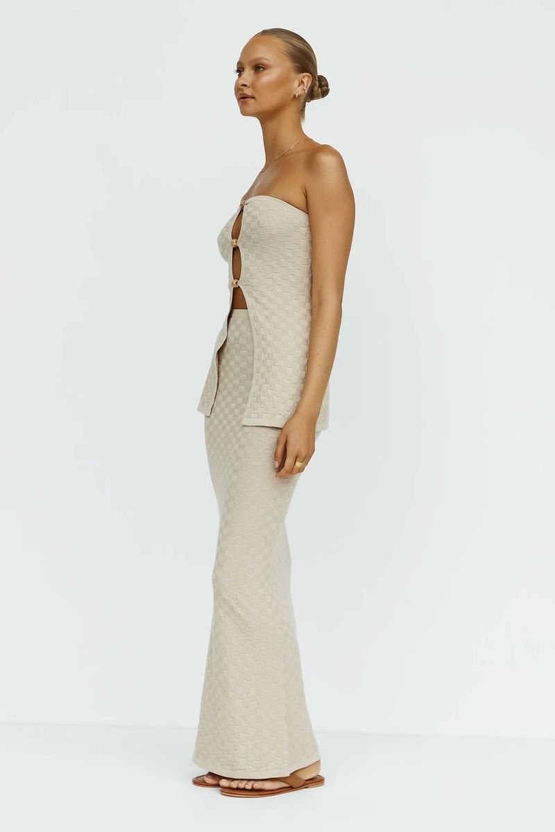 Elegância Quadriculada: Saia Lápis de Tricô Cintura Alta