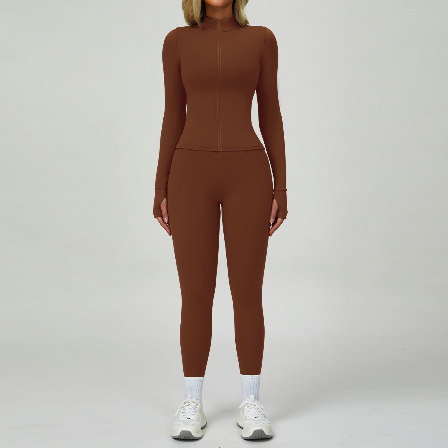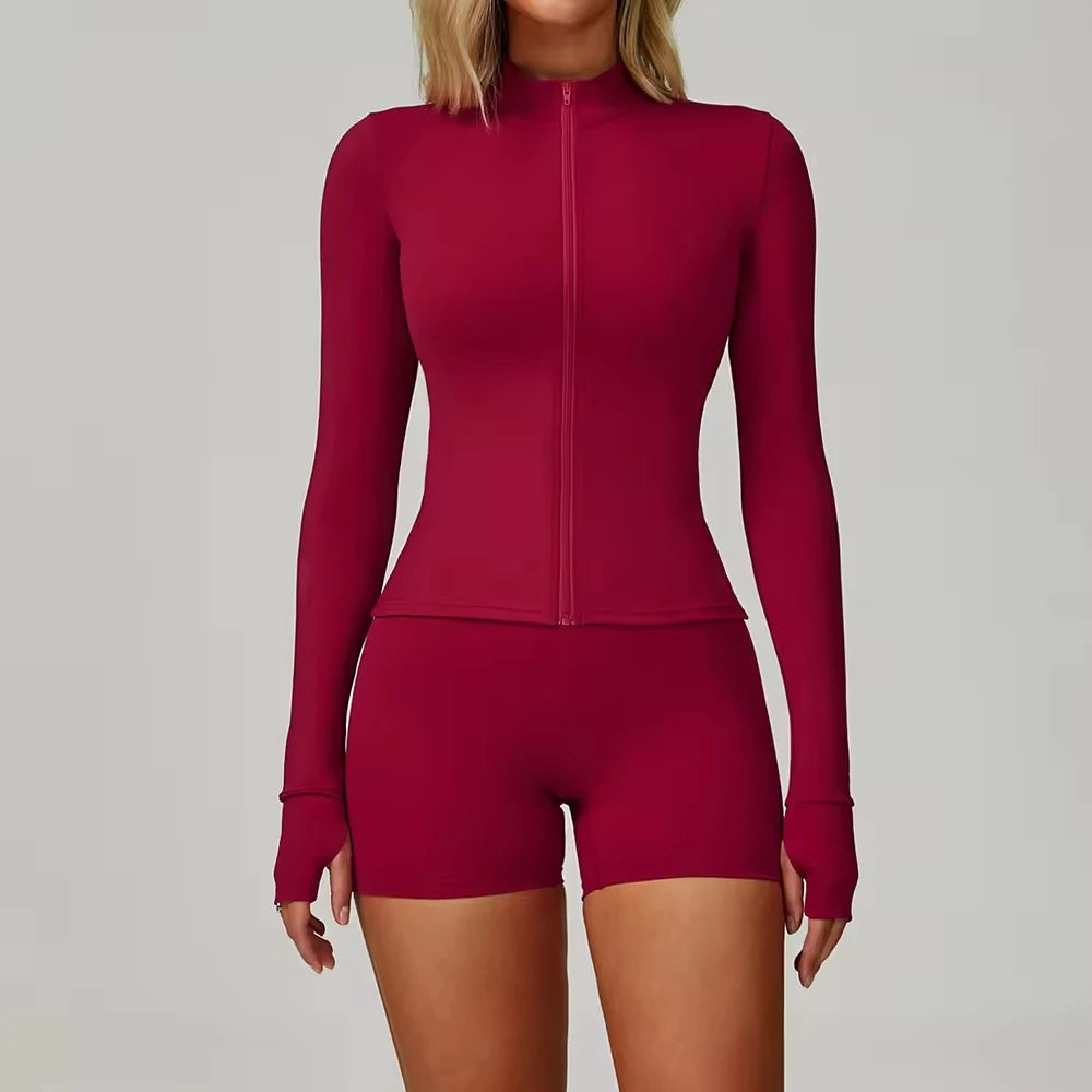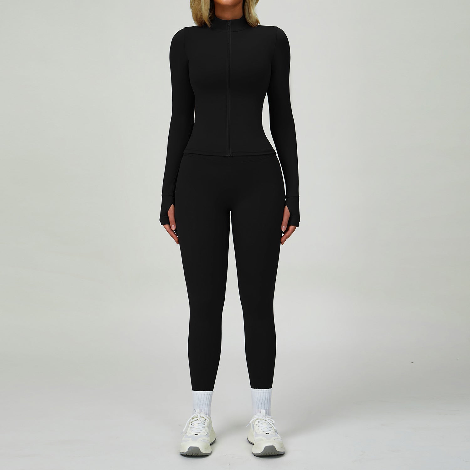 Conjunto de Ginástica de Senhora com Fecho e Manga Comprida para Outono/Inverno