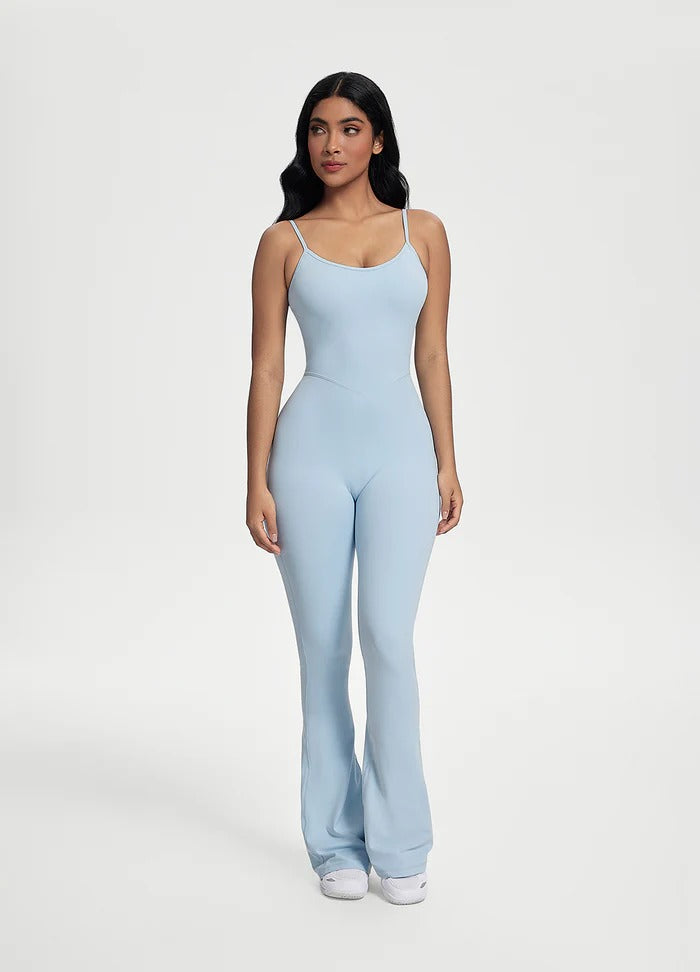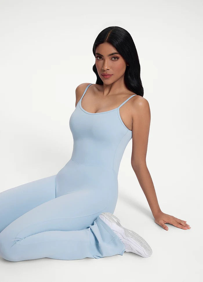O Macacão Fitness Azul-Cinzento foi desenhado para mulheres que procuram liberdade total e sustentação durante o treino.