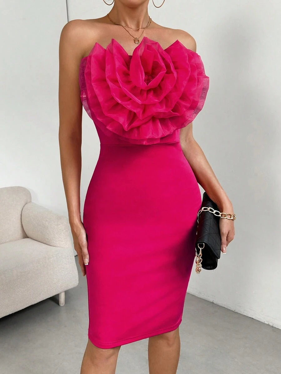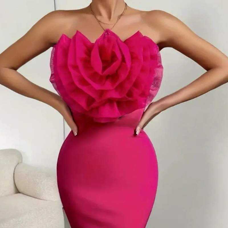A estrutura sem alças realça os ombros e o colo, enquanto a silhueta curta e elegante valoriza a postura e alonga as pernas. O tecido acetinado de alta qualidade confere um brilho suave, perfeito para noites especiais, festas de destaque e eventos onde cada detalhe importa.