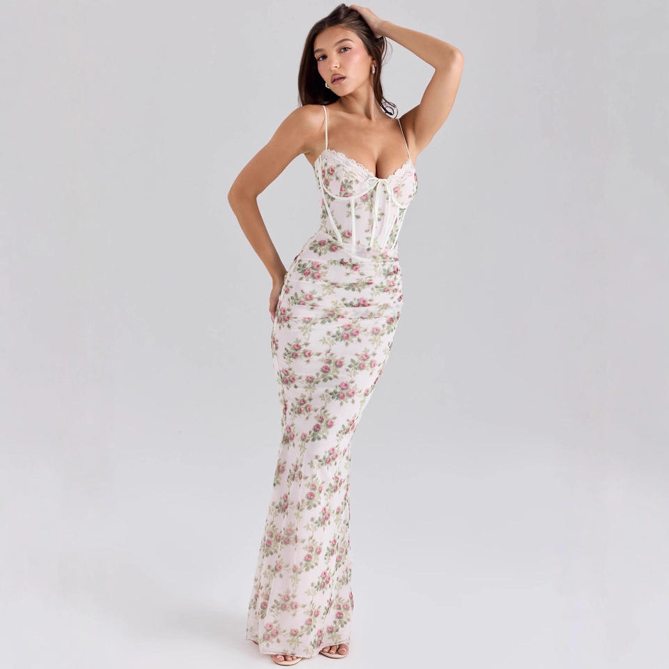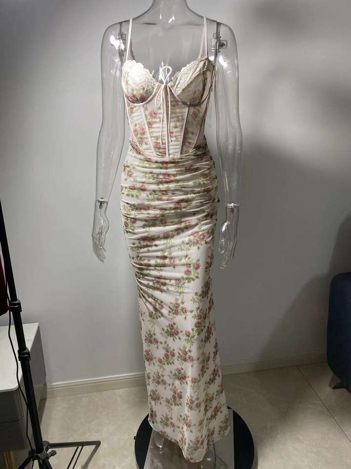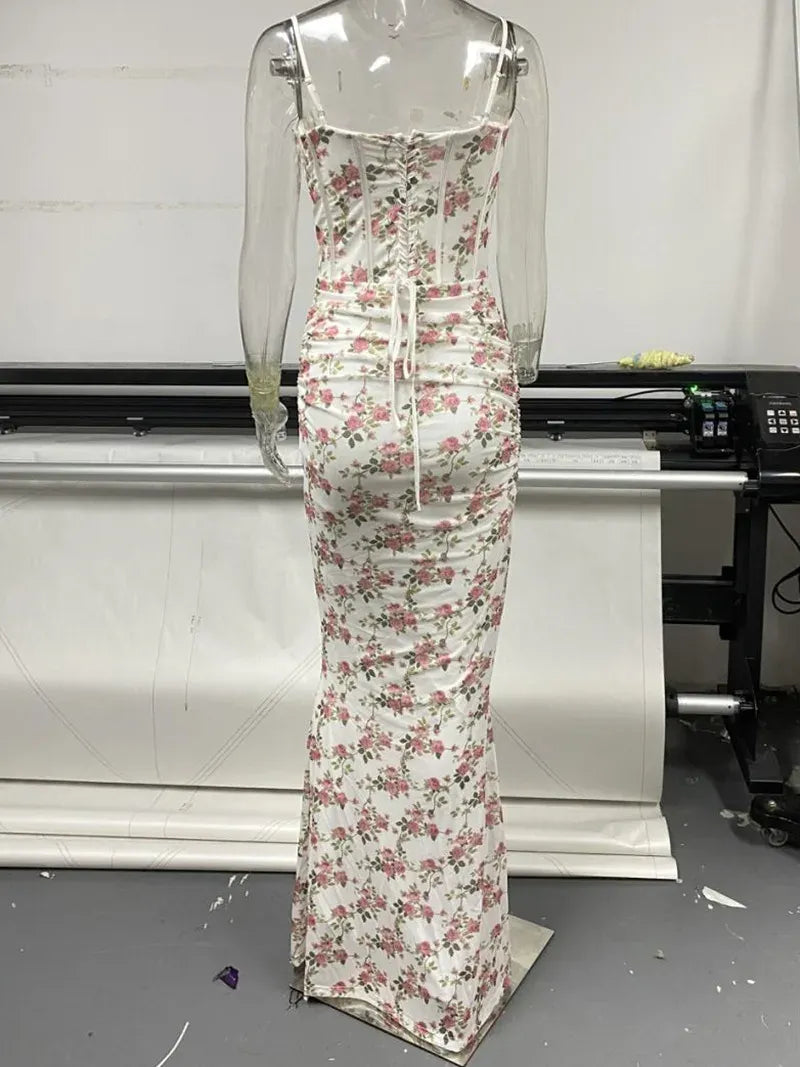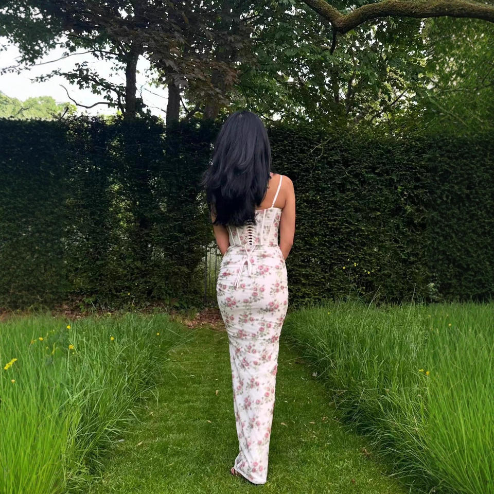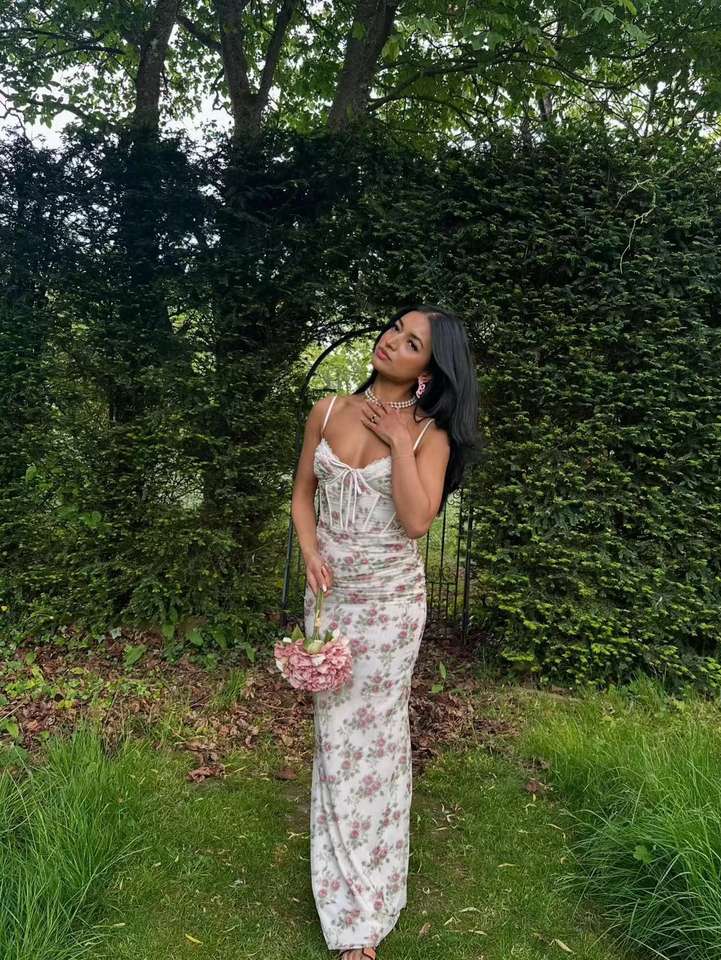 Vestido Satin Luciana em branco com decote cowl neck fluido e alças finas. O tecido em satin brilhante cria um efeito luminoso, enquanto o padrão floral romântico adiciona um toque tropical. Corte ajustado tipo sereia que valoriza a silhueta com elegância. Detalhes de franzidos, laço e zíper discreto. Forro em algodão para conforto e respirabilidade. Ideal para dias de verão, passeios à beira-mar e ocasiões descontraídas com estilo.