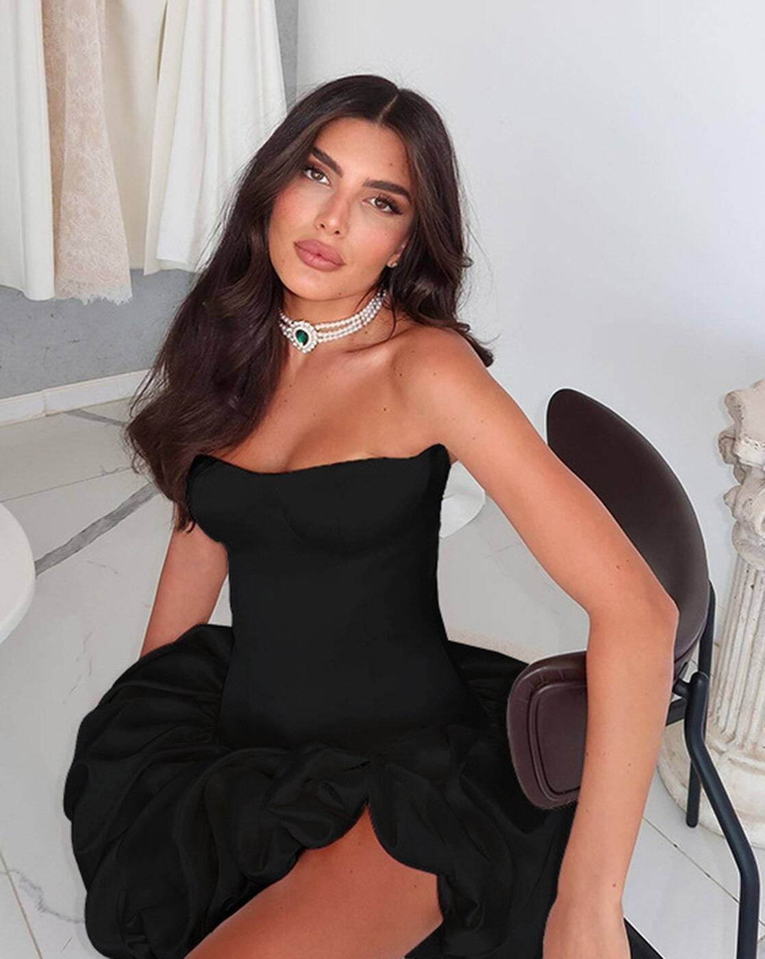 Com o seu design tomara-que-caia, ele valoriza o colo e deixa os ombros à mostra, criando um visual moderno e sofisticado.