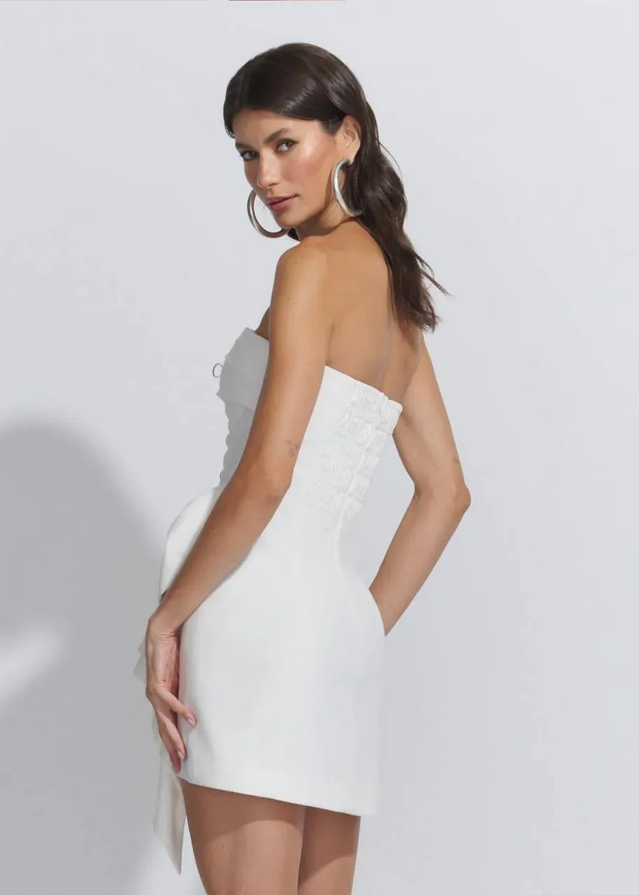 O Vestido Maílla é uma peça mini, elegante e envolvente, criada para mulheres que apreciam um toque de charme clássico com detalhes modernos. O destaque fica para o laço frontal estruturado, que confere feminilidade imediata sem exageros.