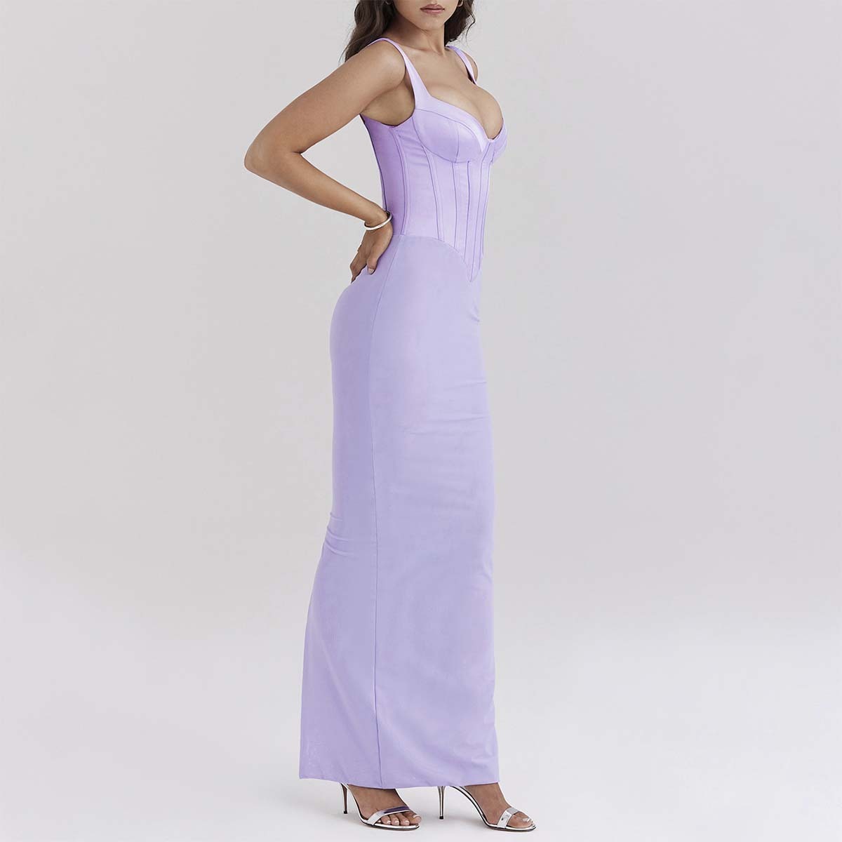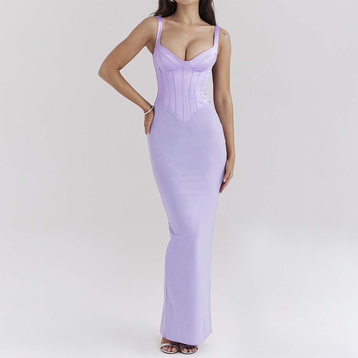 Vestido Maxi Corset Cetim Orquídea: Elegância Intemporal