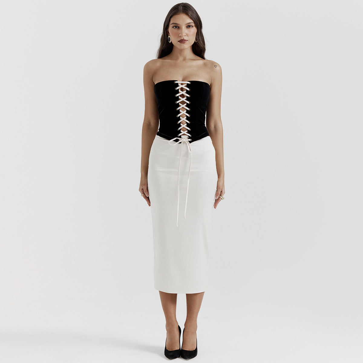 Este deslumbrante vestido midi combina elegância e sensualidade, perfeito para eventos especiais ou para uma noite inesquecível. Com um design de suspensório, decote nas costas e confecionado em cetim macio, este vestido garante um fitting impecável e um look sofisticado.