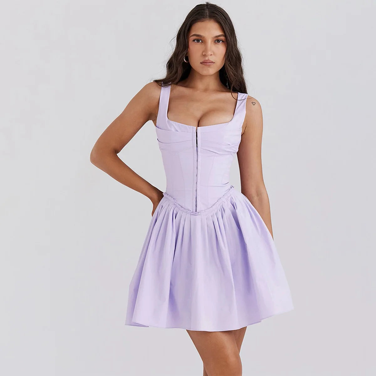 Abrace o calor com este vestido mini sem mangas, perfeito para festas de verão e encontros casuais. Com um decote quadrado e um design slim-fit, este vestido oferece um look chique e confortável. Disponível em várias cores vibrantes, é uma adição versátil a qualquer guarda-roupa.