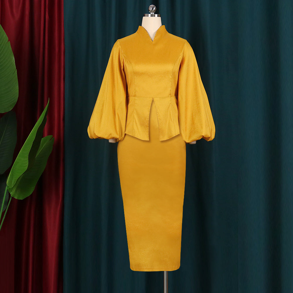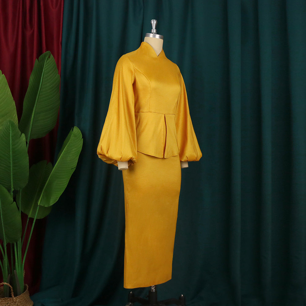 Elegância Festiva: Vestido Longo de Manga Lanterna com Decote em V para Ocasiões Especiais