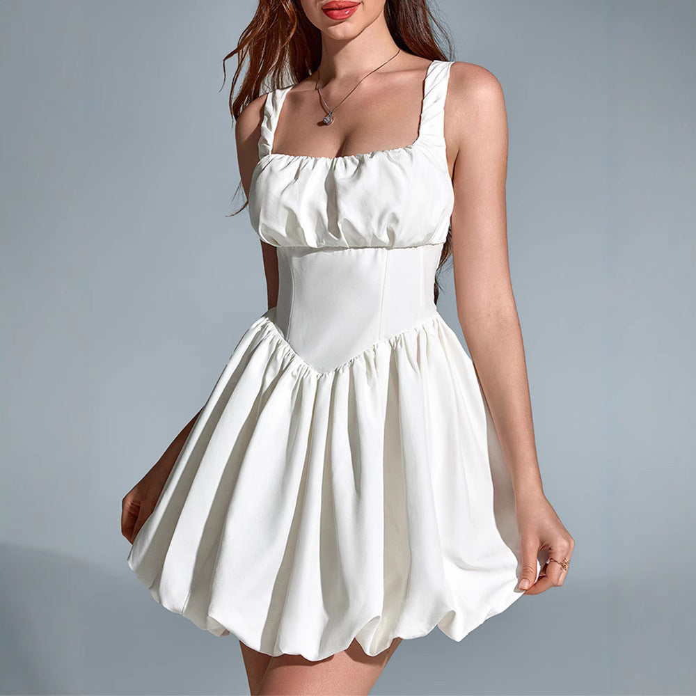 Abrace o verão com este charmoso mini vestido. Apresentando um design sem mangas e detalhes de peixe, este vestido é perfeito para festas, clubes ou para um look casual e elegante. O corte curto e o estilo bubble adicionam um toque divertido e moderno ao seu guarda-roupa.