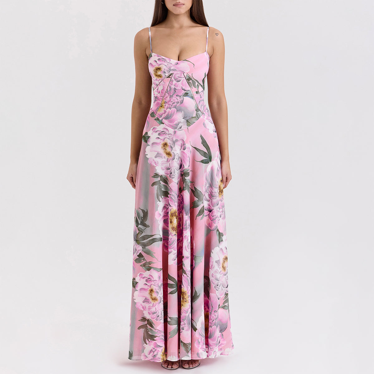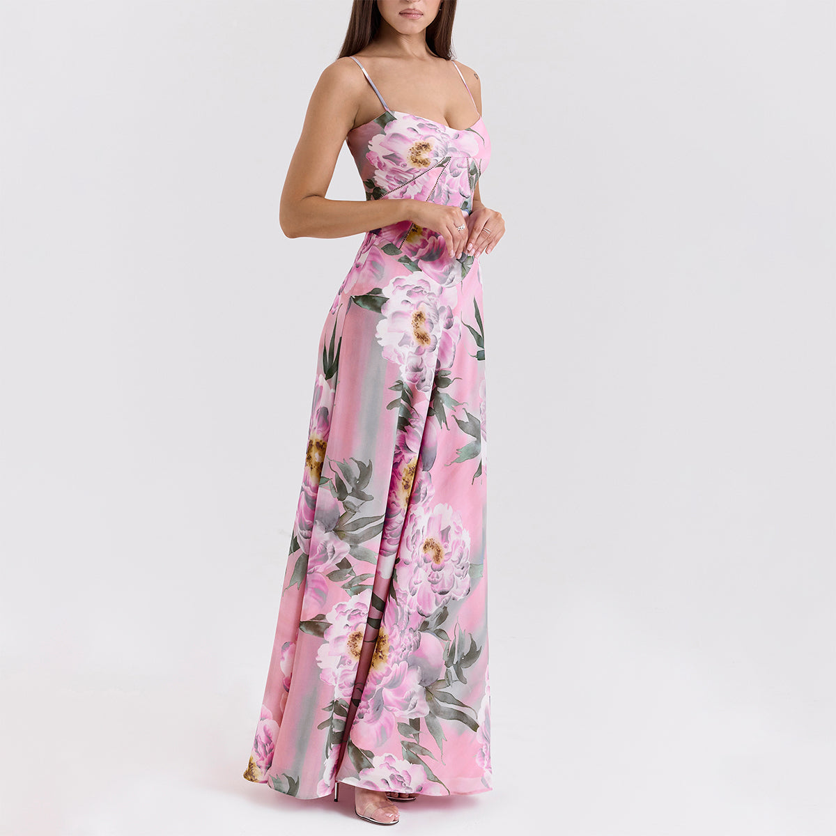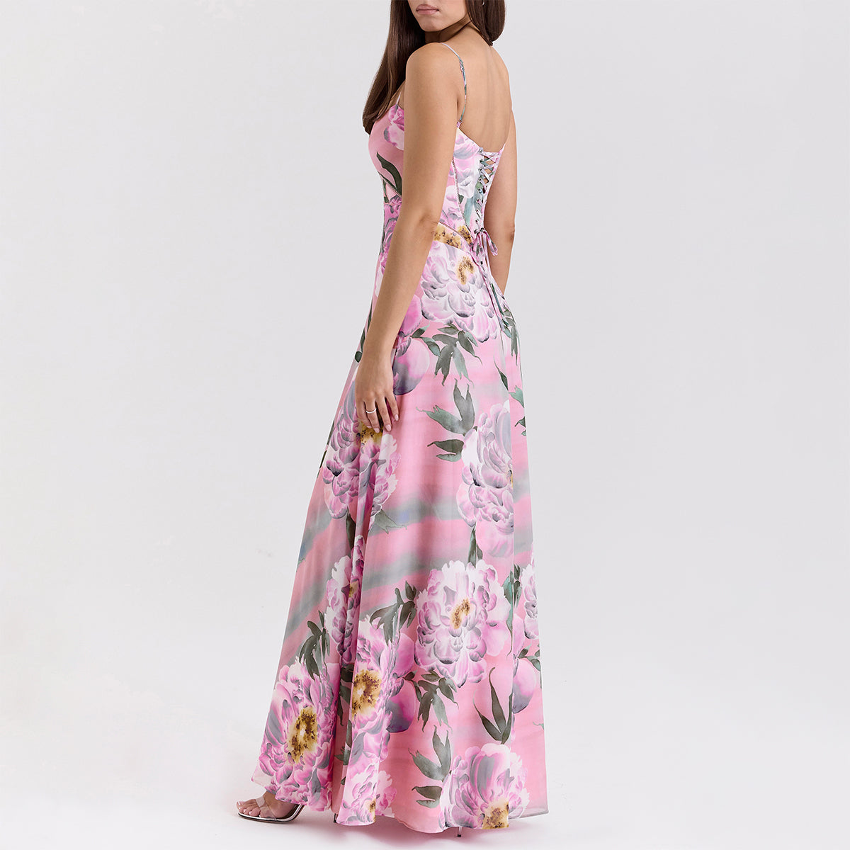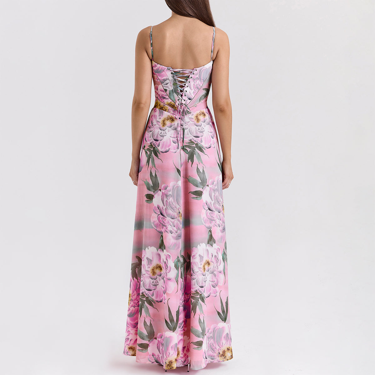 Elagente Vestido Maxi Elegante Floral Com Renda Nas Costas