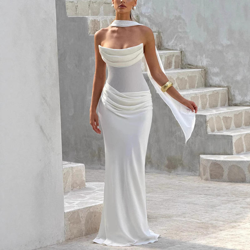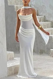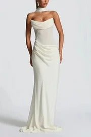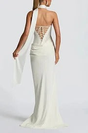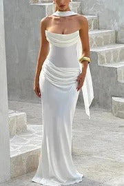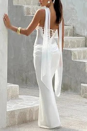 Vestido Satin Sienna em branco — uma escolha sofisticada para eventos especiais. O tecido satin duplo oferece estrutura e maciez, enquanto a modelagem bodycon realça a silhueta com conforto. Decote em V, costas abertas com detalhes franzidos e zíper discreto completam o design elegante e moderno. Perfeito para quem busca sensualidade refinada sem excessos.